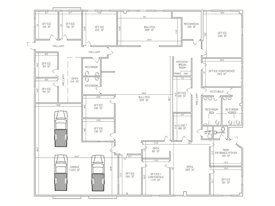 6,127 SF of office area
